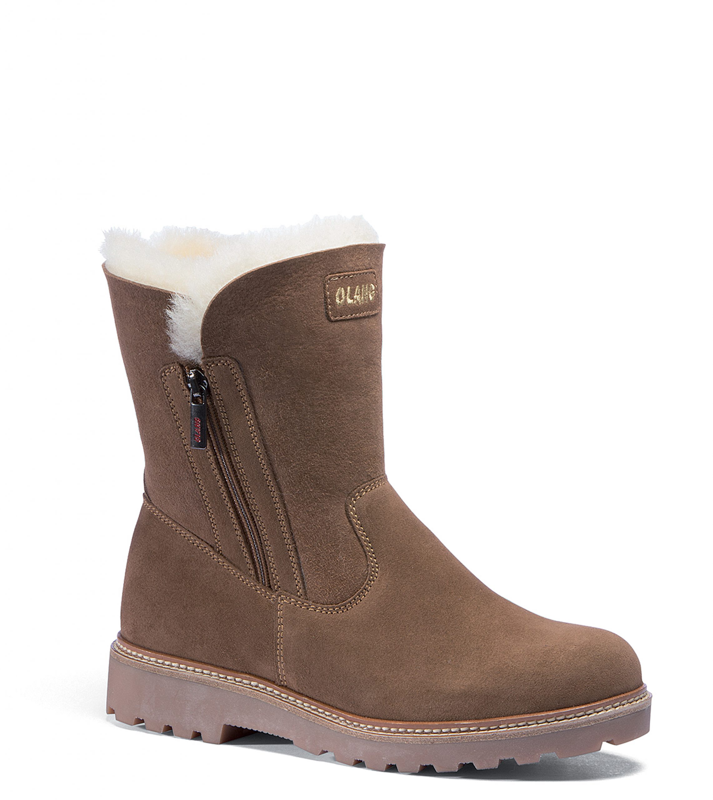 De Olang Agata is een snowboot met een halfhoge schacht. De laars is vervaardigd van suède leer en zuivere schapenwol. De rubberen zool heeft een diep profiel en biedt grip en loopcomfort. De laars heeft een ritssluiting voor een makkelijke in- en uitstap.
