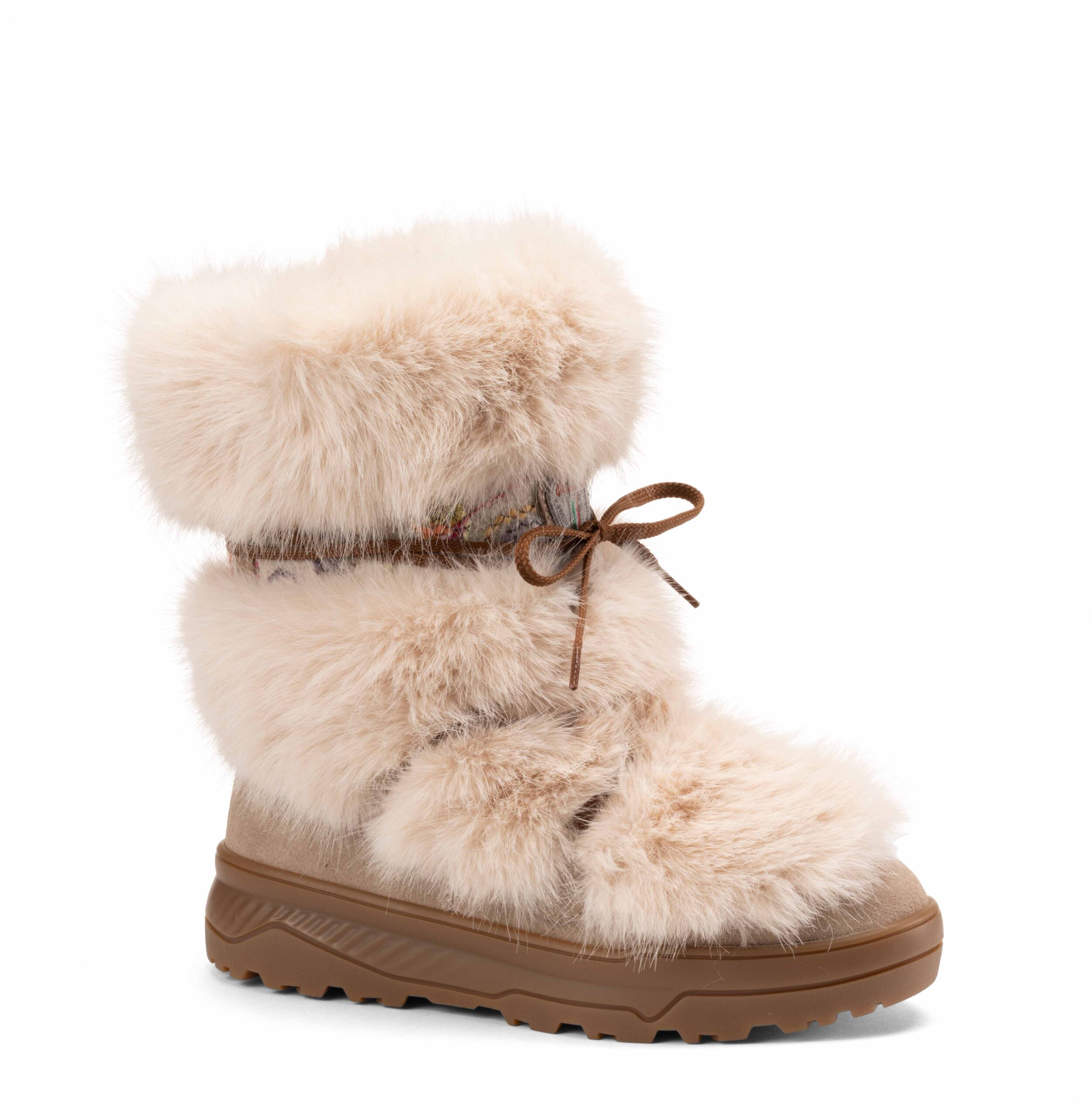 De Olang Wanda is een middelhoge snowboot tot de kuit voor dames. De upper van imitatiebont is enorm zacht, de voering van zuivere wol omhelst je voeten en het waterbestendige membraan houdt je droog.